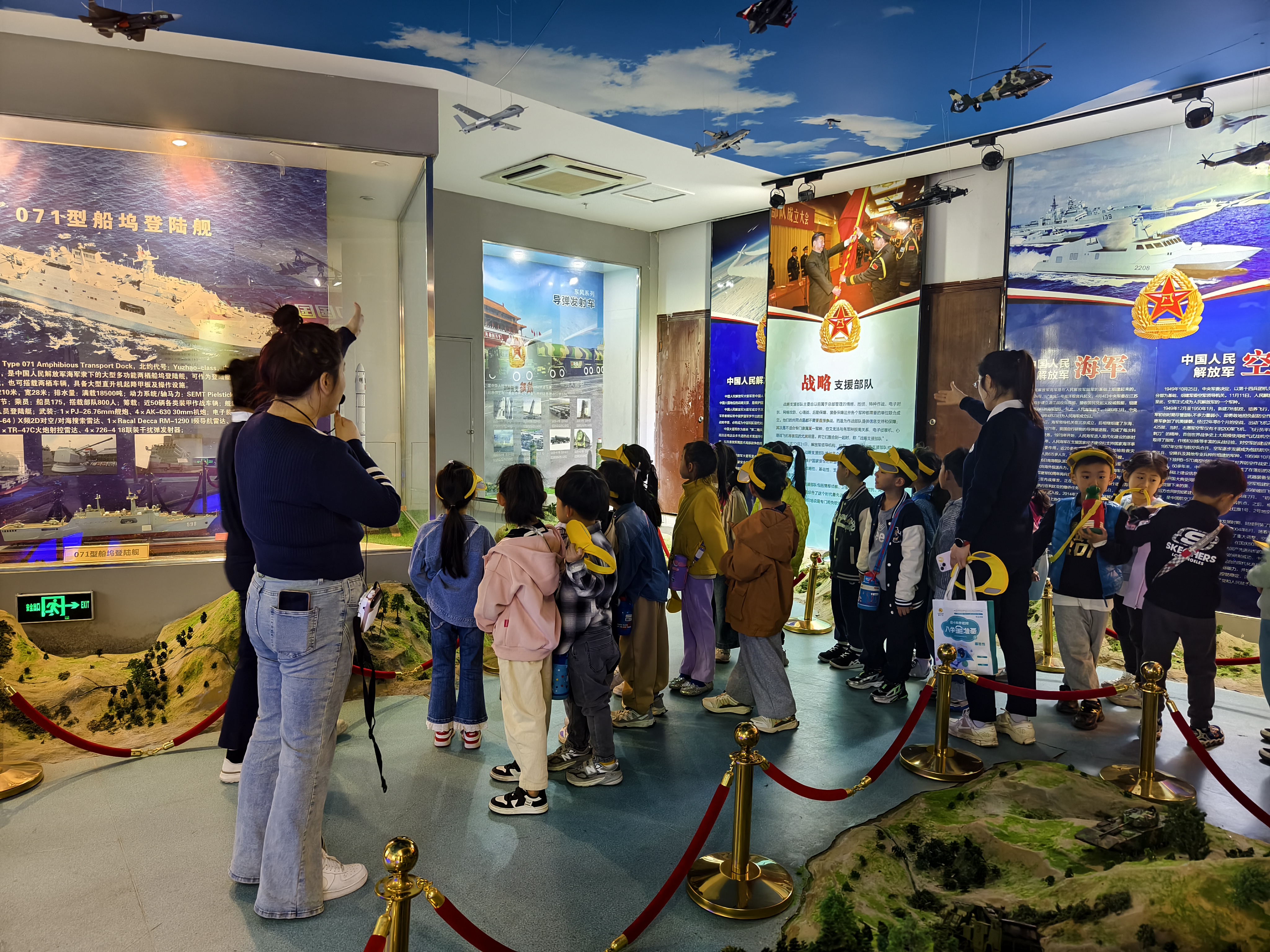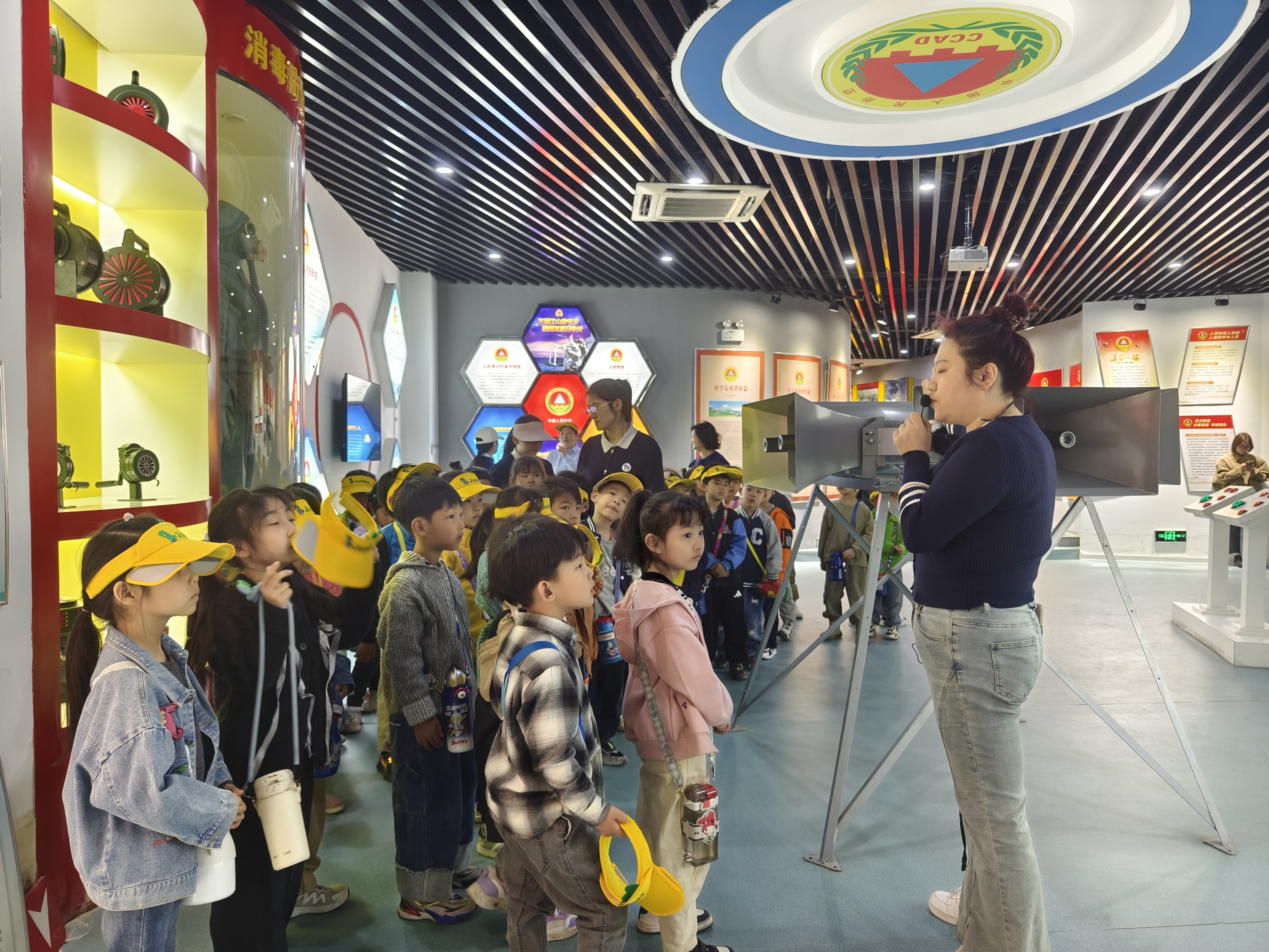 在讲解员的带领下,小朋友们依次参观了国防、人防和民防三大主题展厅,认真聆听了讲解员对党的建设发展、人防国防知识、灾害事故处置、家庭安全防护等方面的知识讲解。活动期间通过互动体验、现场教学、电子问答等寓教于乐的形式,让小朋友们了解了国防人防知识、火灾自救知识等内容。
